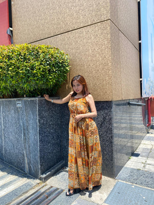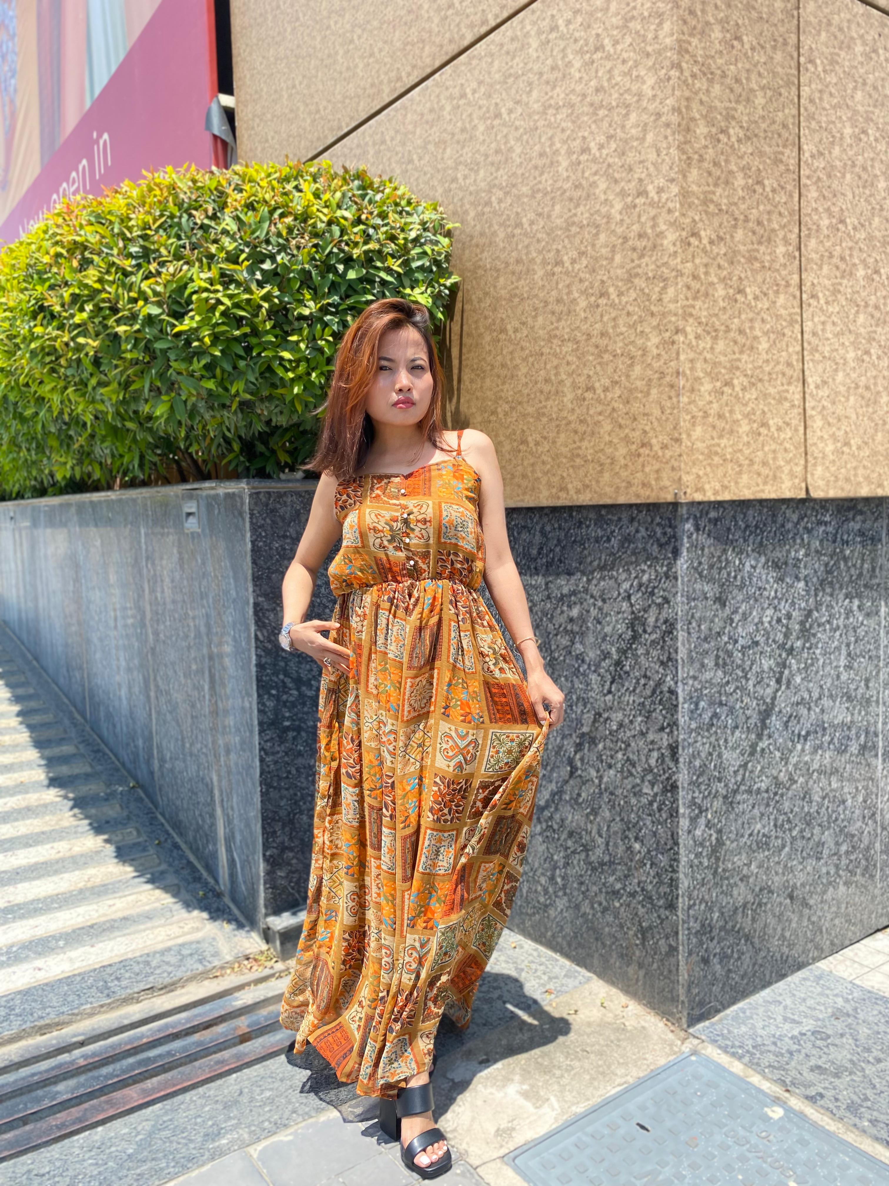 Crafted from lightweight, breathable fabric, it drapes beautifully and keeps you cool even in warm Indian weather. The sleeveless design and relaxed fit make it ideal for casual wear or festive gatherings. Pair it with statement earrings and heels or go casual with flats for a complete bohemian look.