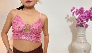 Sequin Glam: Pink Crop Top